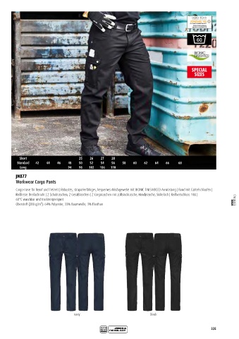 Reißfeste Dreifachnaht | 2 Schubtaschen, 2 Gesäßtaschen | 2 Cargotaschen mit Zollstocktasche, Handytasche, Stiftefach | Reißverschluss: YKK |